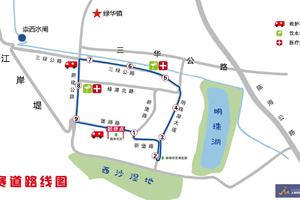 【起点】西来农庄-堡湖路-明珠湖大道-荷花博览园(折返点)-明珠湖大道-三绿公路-新建公路-堡湖路-西来农庄【终点】,总里程为10km。