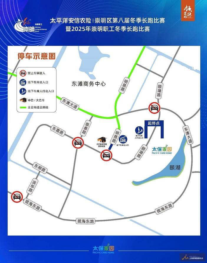 (一)进出主会场路线: 比赛日(12月14日),赛道周边道路将临时封闭,参赛者驾车从东滩大道、明慈路可以顺利进出赛事主会场。